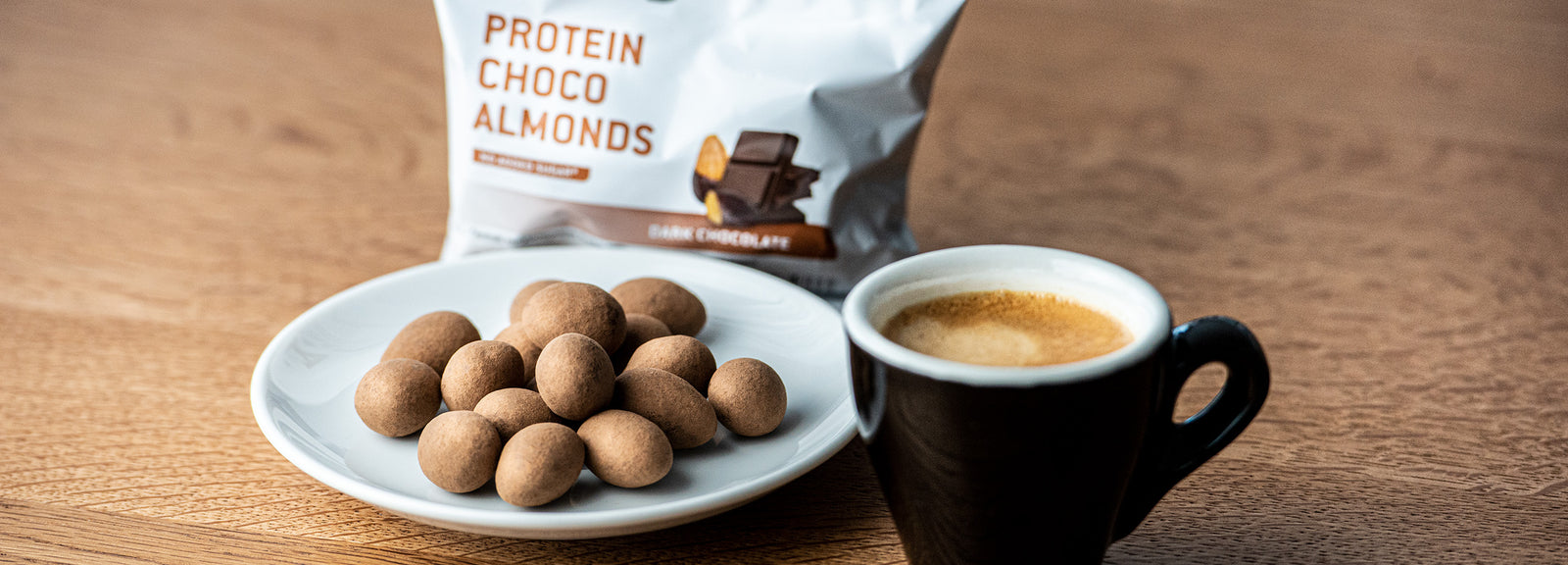 CHOCO PROTEIN ALMONDS - Feine Mandeln überzogen mit zuckerfreier Schokolade und extra viel Molkenprotein. Geeignet für Schokoladenliebhaber und Fitness-Enthusiasten, denen Nährwerte und Zutaten genauso wichtig wie Geschmack sind.
